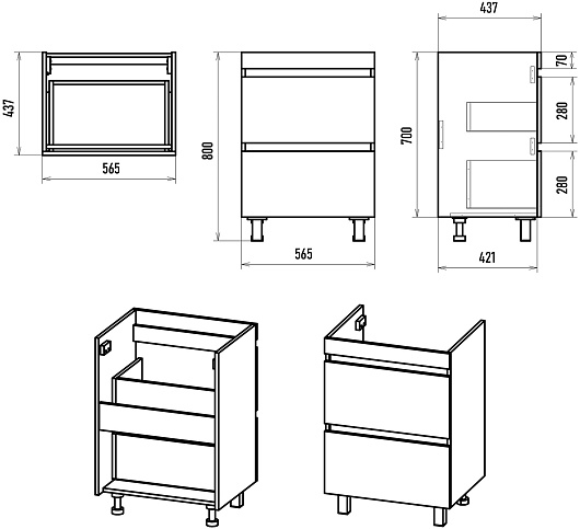 Комплектация: тумба, раковина, ножки, крепеж.