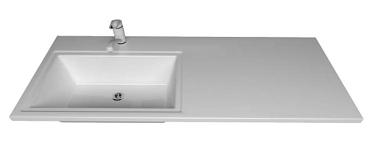 - Вместительная столешница служит дополнительной плоскостью, на которой можно поместить элементы декора или любые необходимые предметы. Литьевой мрамор, из которого сделана раковина, экологичен и совершенно безвреден.