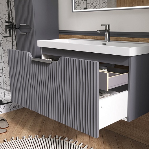 Тумба под раковину Mirage 100 1 ящик подвесная графит софт
