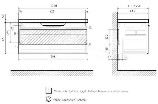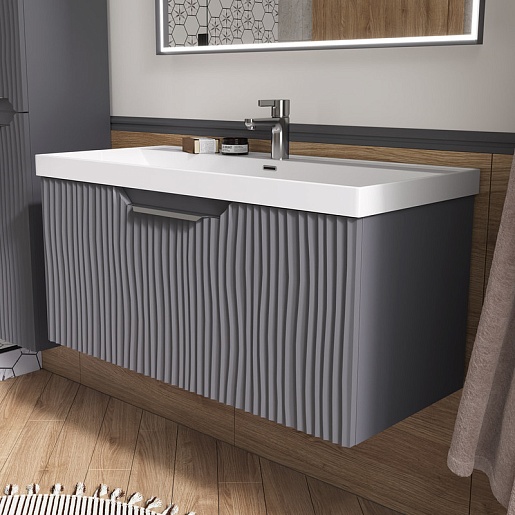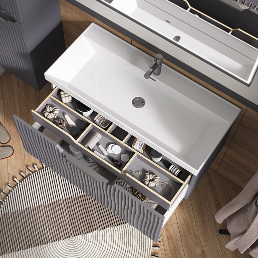 Equil Тумба с раковиной Mirage 100 1 ящик подвесная графит софт