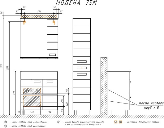 В комплекте: тумба, раковина, ножки.