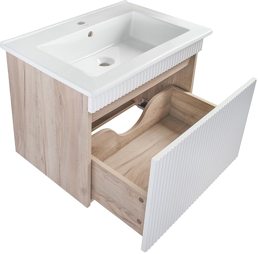 Тумба под раковину Модена 75 подвесная белая/дуб крафт
