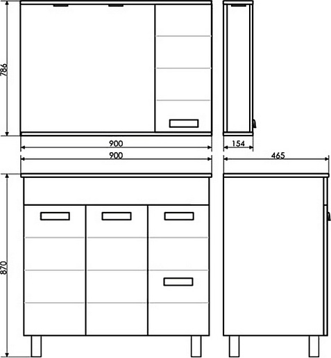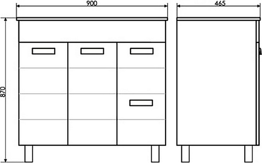 - 2 распашные дверцы, 2 выдвижных ящика.