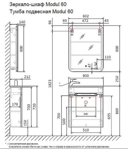 Jorno Тумба с раковиной Modul 60 белая глянцевая