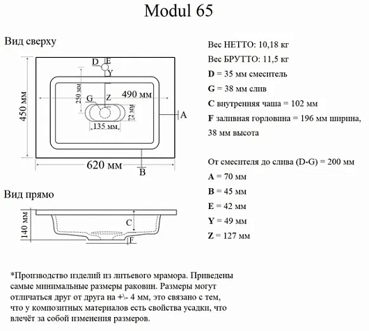 - Материал: искусственный мрамор.