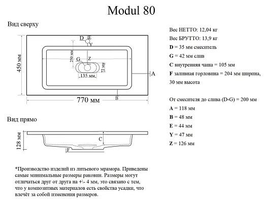 Мебельная раковина Modul 77 глянцевый белый Mol.08.80/W