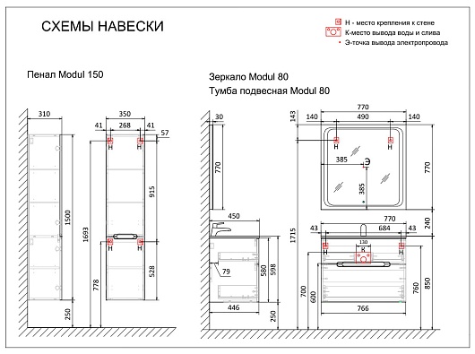 Тумба под раковину Modul 80 подвесная белая Mоl.01.77/P/W