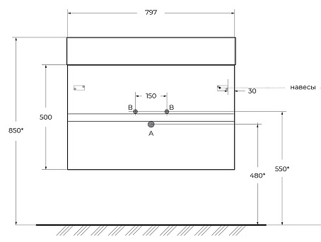Тумба под раковину Molveno-46 80 подвесная ossido
