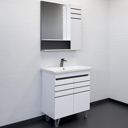 - Створки тумбы декорированы вставками из керамогранита цвета графит.