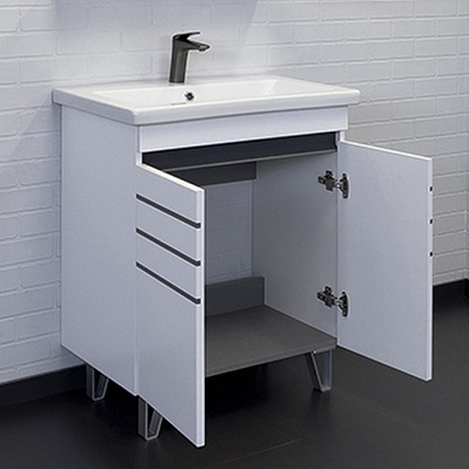 В комплекте: тумба, раковина, ножки.