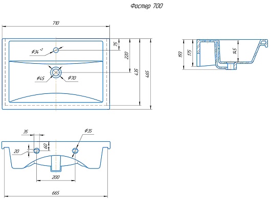 Мебельная раковина Фостер 70 белая