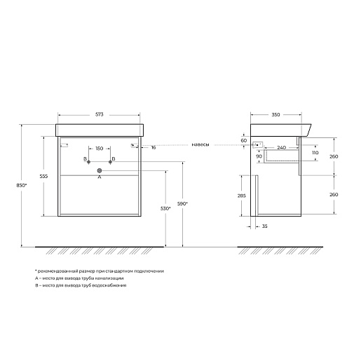 Тумба под раковину Neon 60 подвесная Pino Bianco