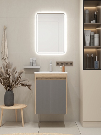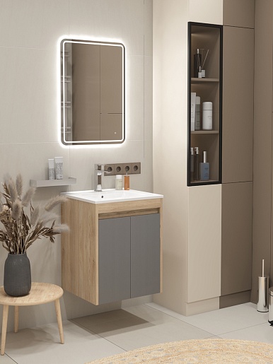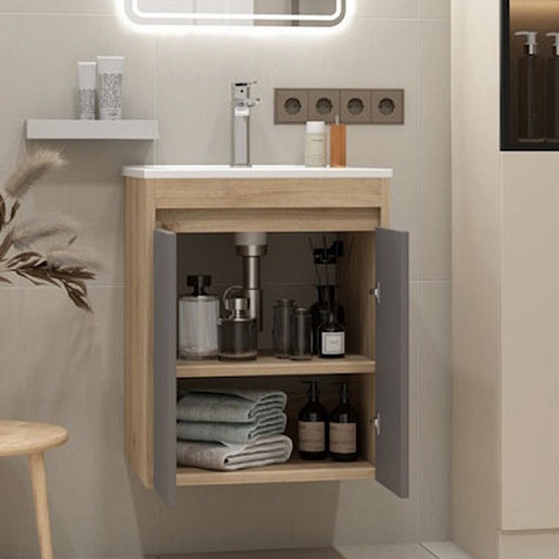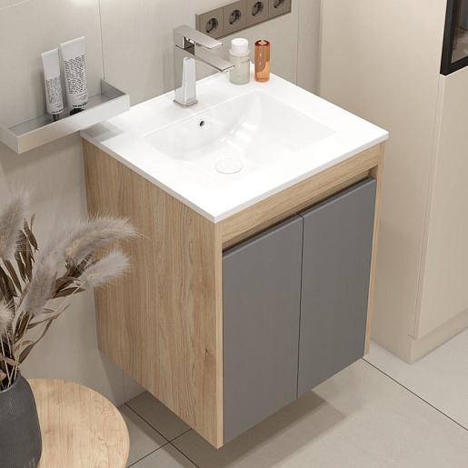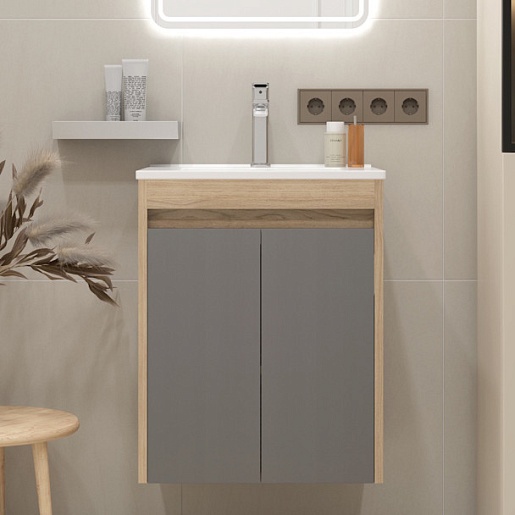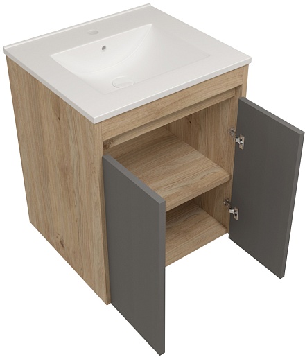 Подвесная тумба с раковиной Teymi Netta 50 дуб/графит- арт. T60601 / T60607 / T51000.