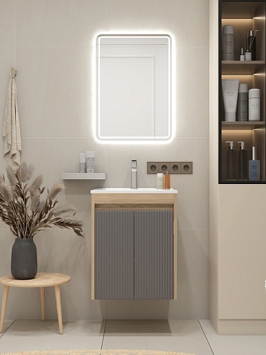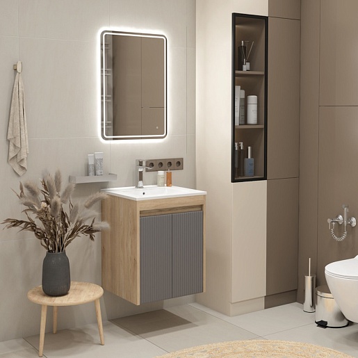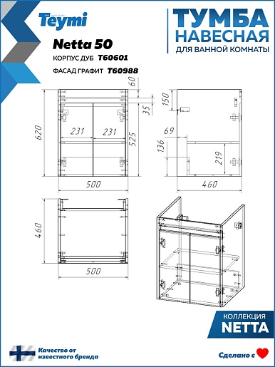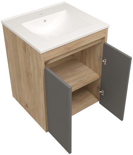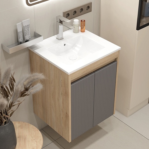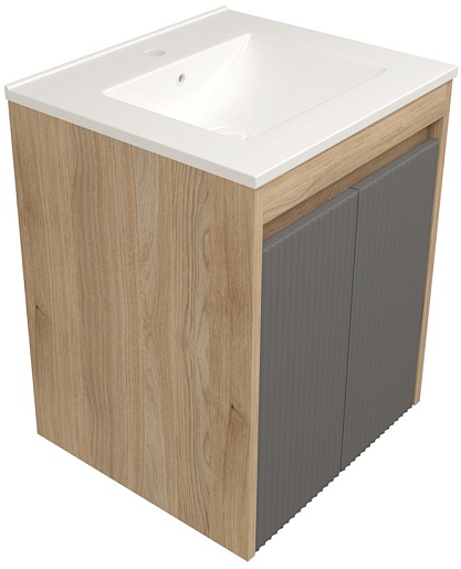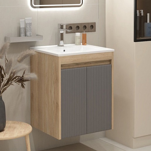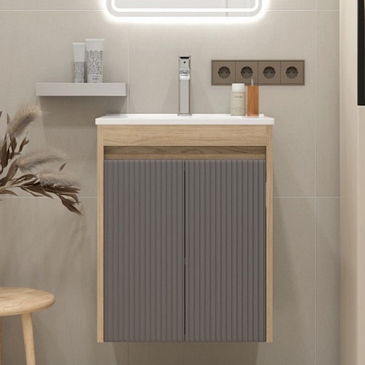 Подвесная тумба с раковиной Teymi Netta 50 Волна дуб/графит - арт. T60601 / T60617 / T51000.