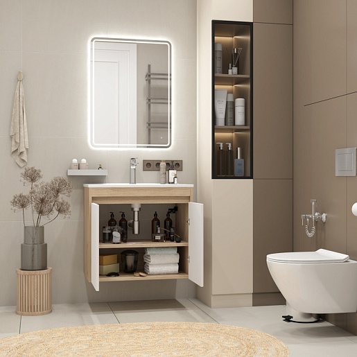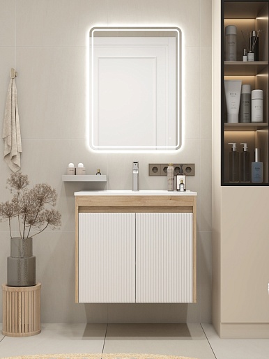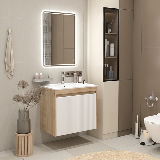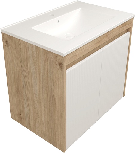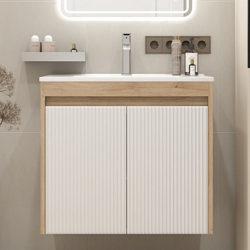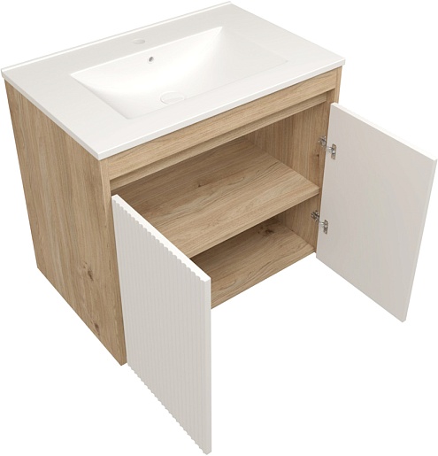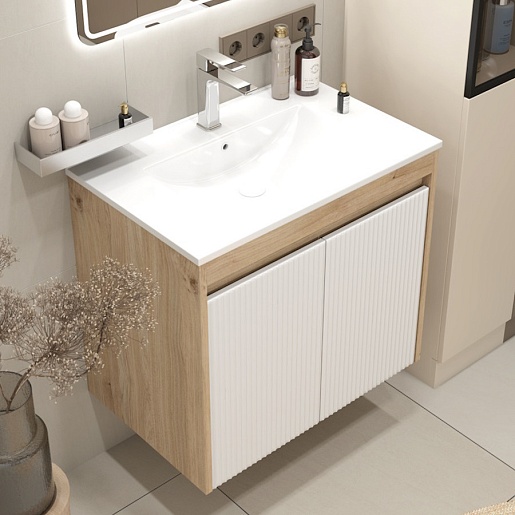 Подвесная тумба с раковиной Teymi Netta 70 Волна дуб/белый - арт. T60603 / T60620 / T51004.