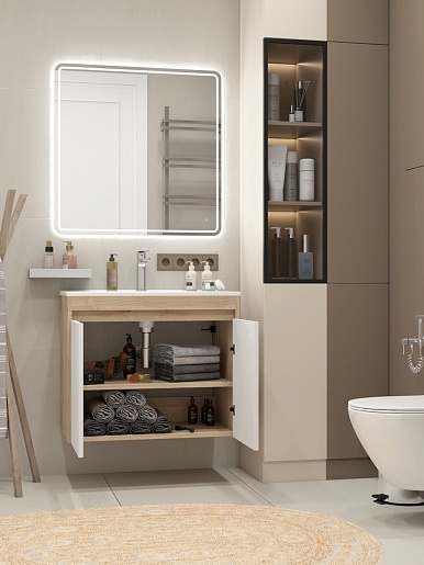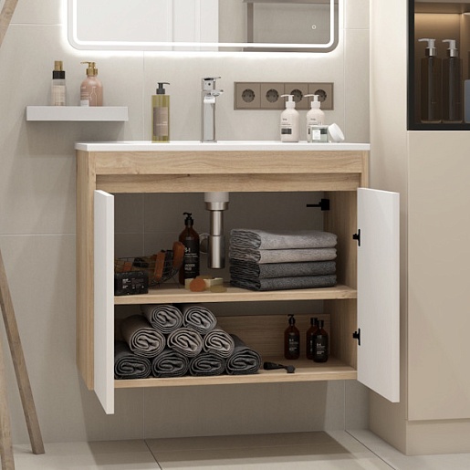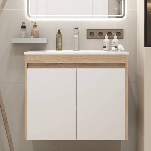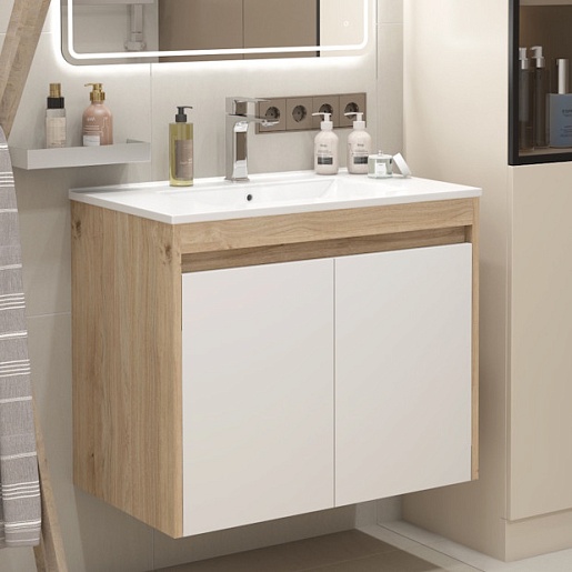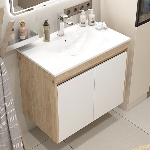 Подвесная тумба с раковиной Teymi Netta 75 дуб/белый - арт. T60604 / T60612 / T51005.