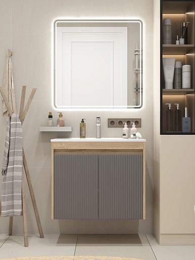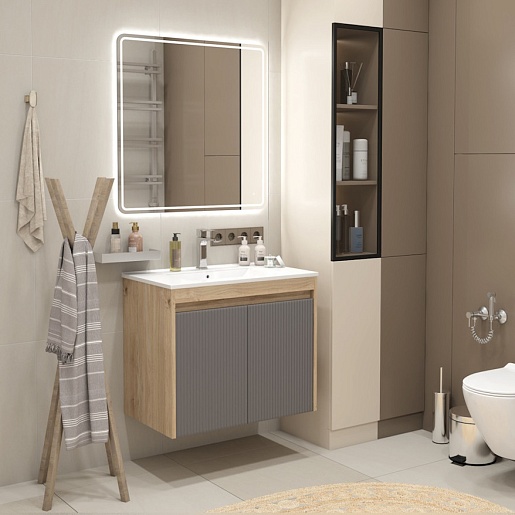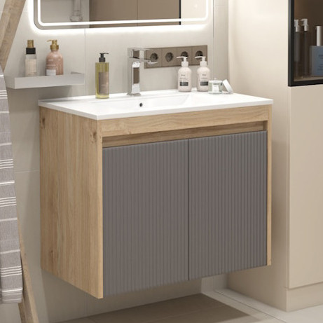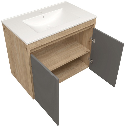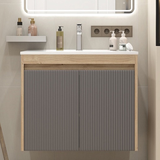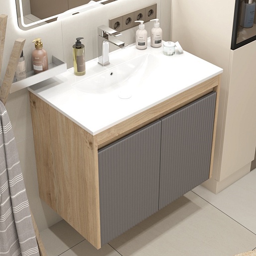 Подвесная тумба с раковиной Teymi Netta 75 Волна дуб/графит - арт. T60604 / T60623 / T51005.