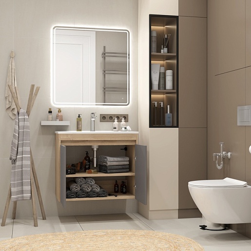 Тумба под раковину Netta 75 подвесная без фасада дуб