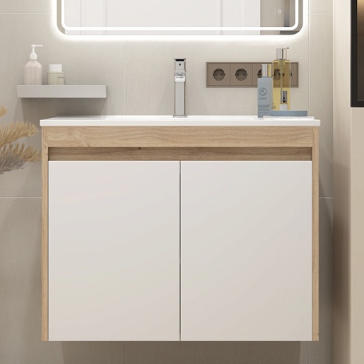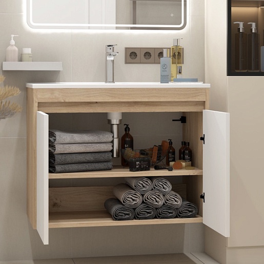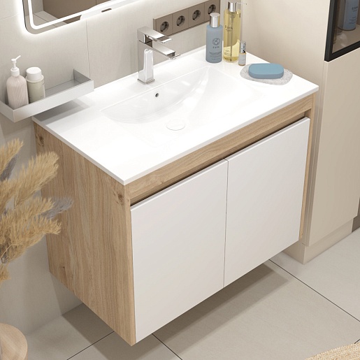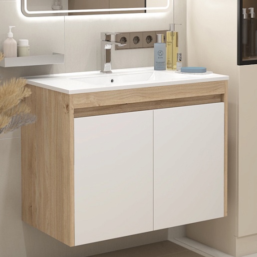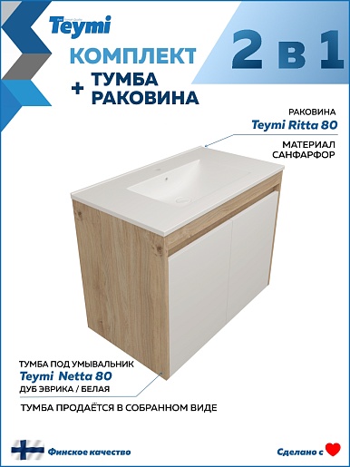 Подвесная тумба с раковиной Teymi Netta 80 дуб/белый - арт. T60605 / T60614 / T51001.