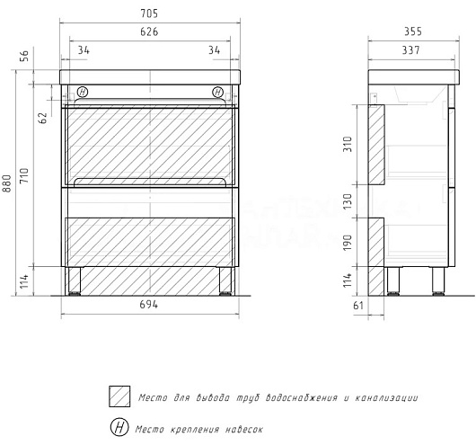 Тумба под раковину Nice 70 2 ящика подвесная белая
