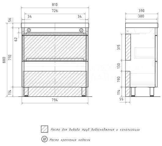 Equil Тумба с раковиной Nice 80 2 ящика напольная белая