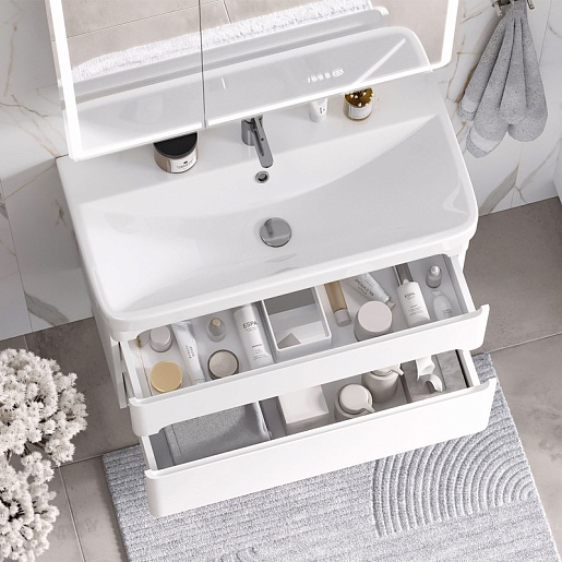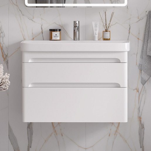 Тумба под раковину Nice 80 2 ящика подвесная белая
