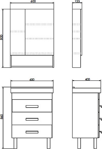 В комплекте: тумба, раковина, ножка (4 шт.).