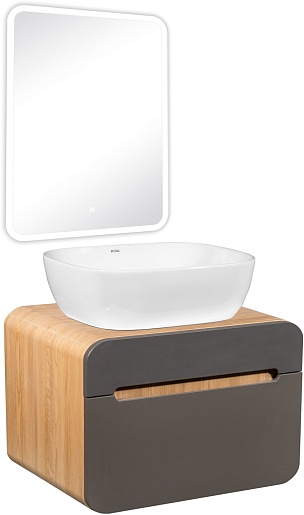 Тумба под раковину Ницца 60 подвесная графит/дуб натуральный