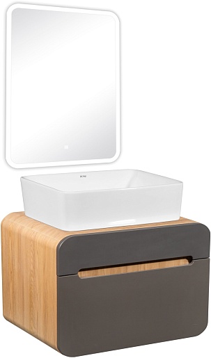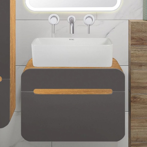 Тумба под раковину Ницца 60 подвесная графит/дуб натуральный