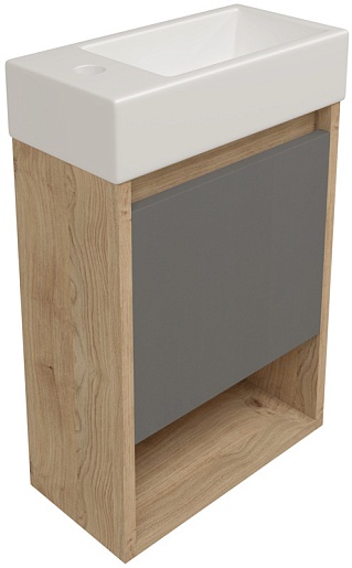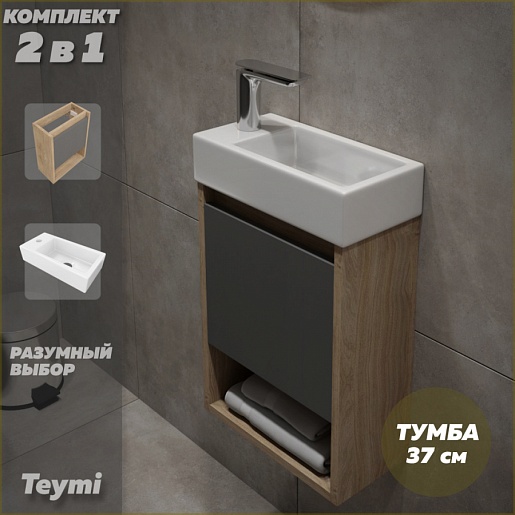 Подвесная тумба с раковиной Teymi Nura 37 L дуб/графит - арт. T60536 / T50904.