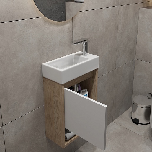 Подвесная тумба с раковиной Teymi Nura 37 R дуб/белый - арт. T60535 / T50905.