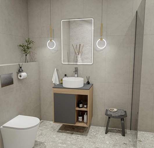 Teymi Тумба с раковиной Nura 60 дуб эврика/графит матовый T60529 раковина T50106