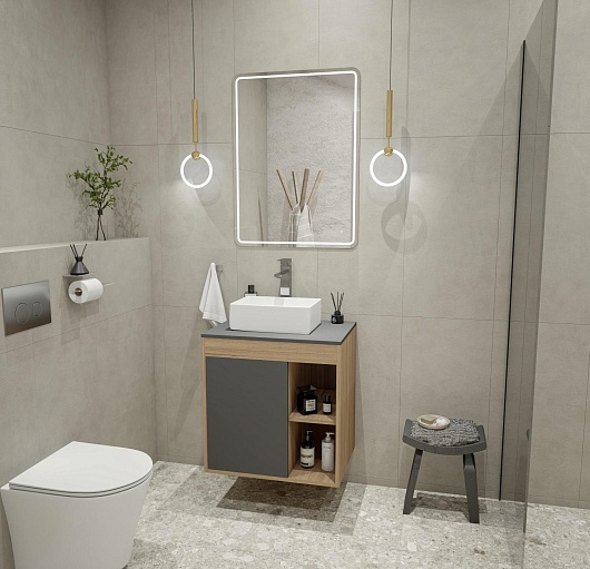 Teymi Тумба с раковиной Nura 60 дуб эврика/графит матовый T60529 раковина T50304