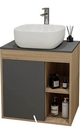 Teymi Тумба с раковиной Nura 70 дуб эврика/графит матовый T60530 раковина T50203