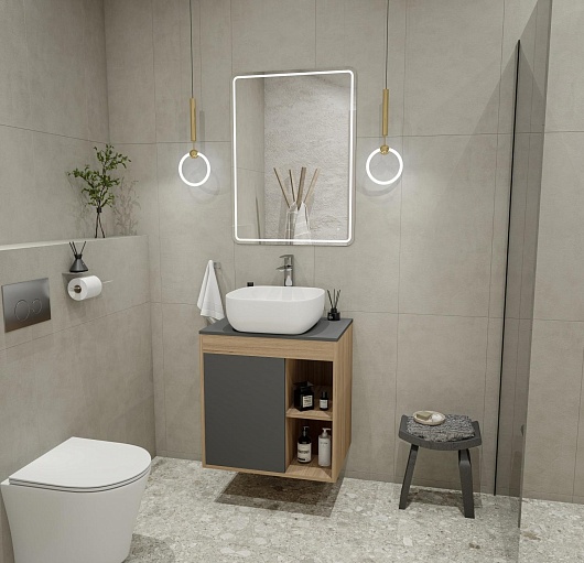 Тумба под раковину Nura 70 дуб эврика/графит матовый подвесная T60530