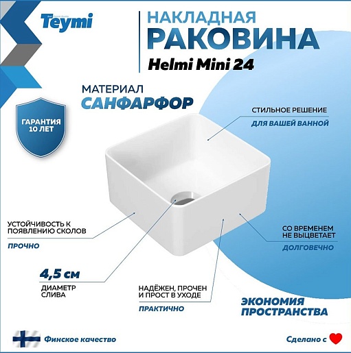 Мебельная раковина накладная Helmi Mini 24 artceramic белая T50303