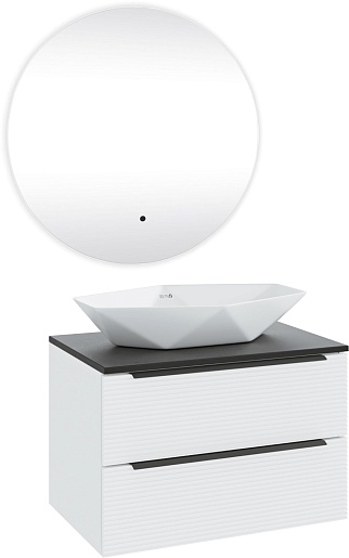 Runo Тумба с раковиной Орлеан 70 Poligono подвесная белая матовая/черный