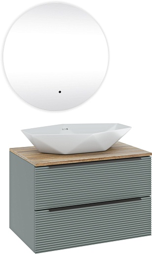 Runo Тумба с раковиной Орлеан 70 Poligono подвесная зеленая/дуб натуральный