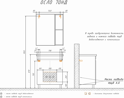 В комплекте: тумба, раковина, комплект ножек.