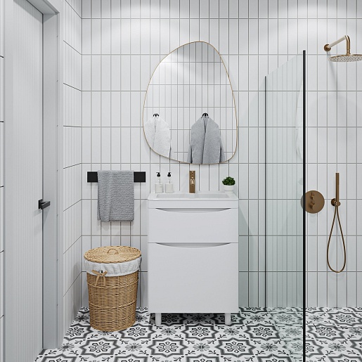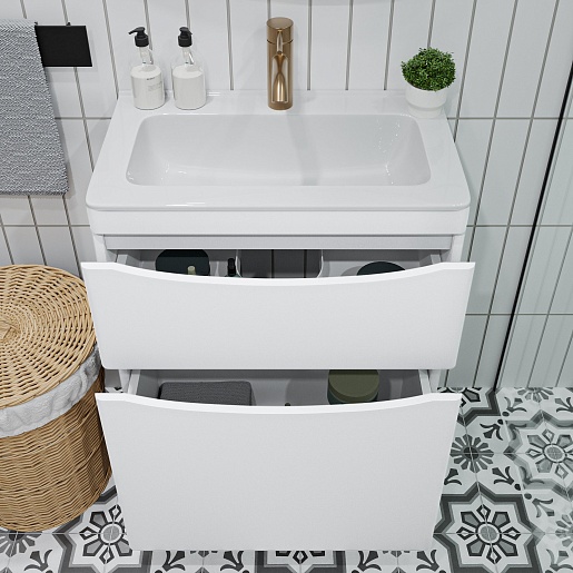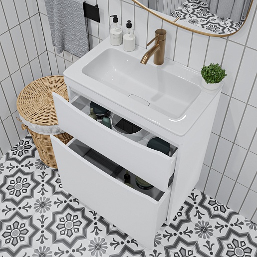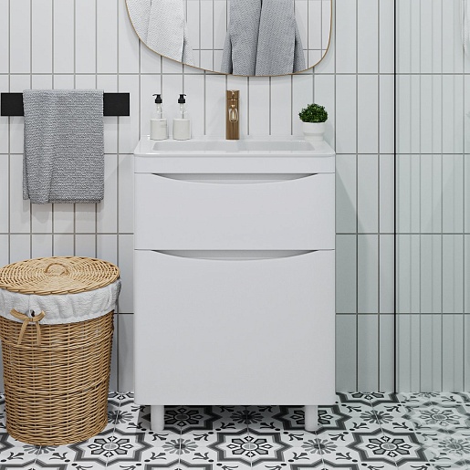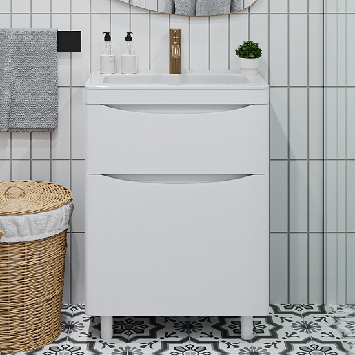 Тумба с раковиной Vivon Ostin 60 напольная белая матовая - арт. Ostin-noz-60-WH / kare-mini-60.