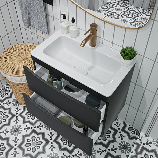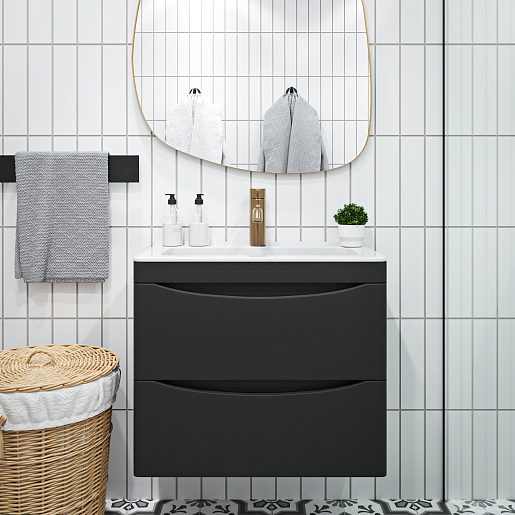 Подвесная тумба с раковиной Vivon Ostin 60 черная матовая.