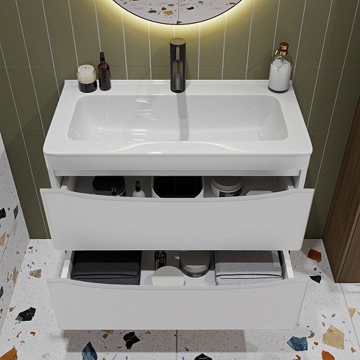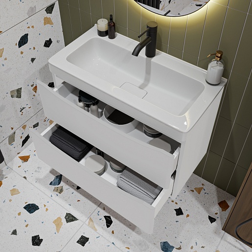 Подвесная тумба с раковиной Vivon Ostin 70 белая матовая.