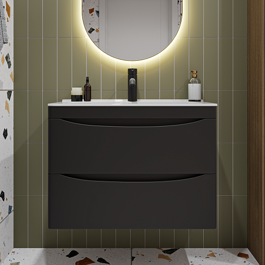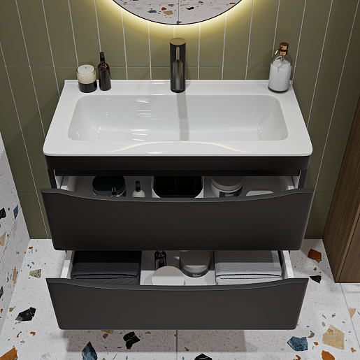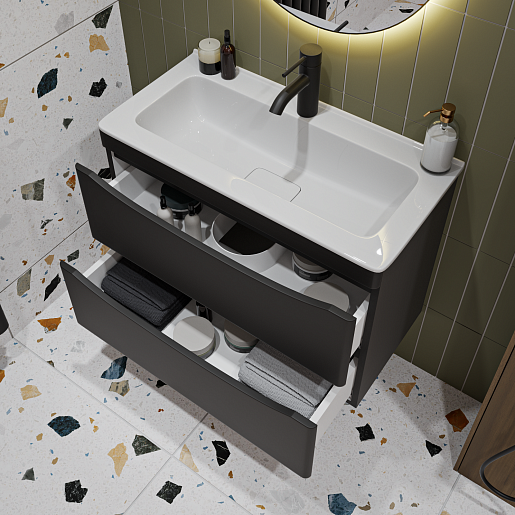 Подвесная тумба с раковиной Vivon Ostin 70 черная матовая.