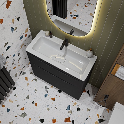 - Нижний вместительный ящик позволит эргономично разметить все необходимые ванные принадлежности.