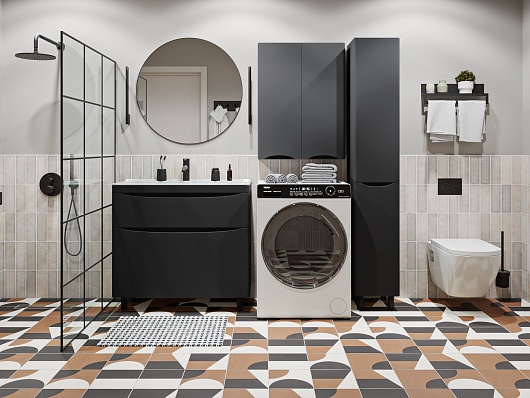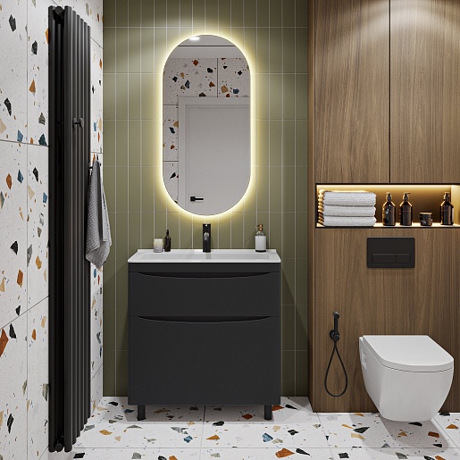 Тумба с раковиной Vivon Ostin 80 напольная черная матовая - арт. Ostin-noz-80-BL / kare-mini-80.