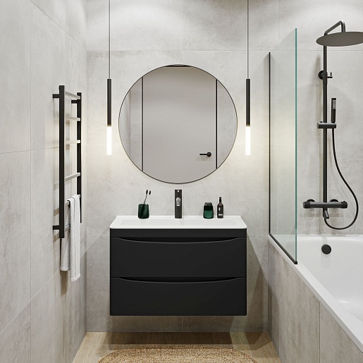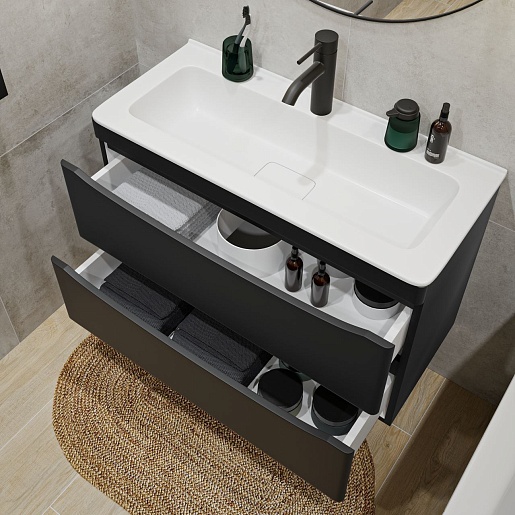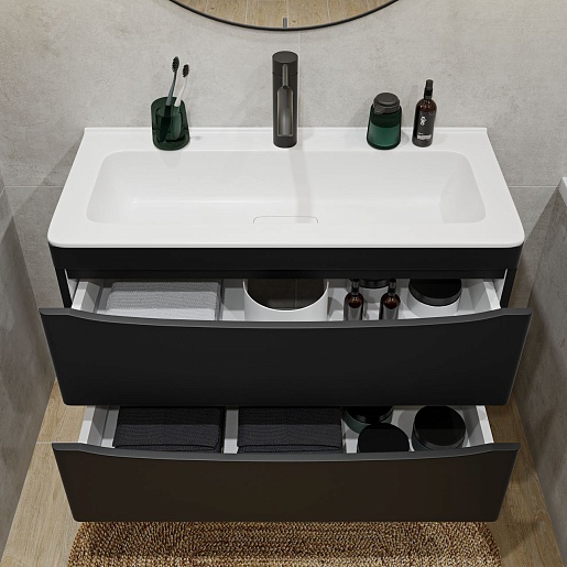 Тумба под раковину Ostin 80 подвесная черная матовая