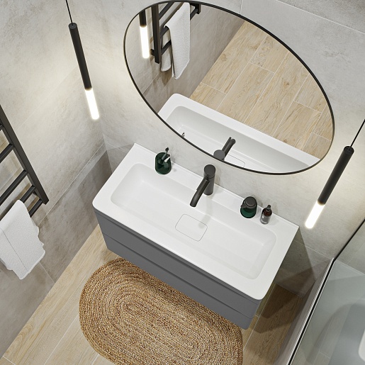 Подвесная тумба с раковиной Vivon Ostin 80 серая матовая.