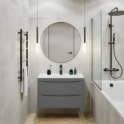 Тумба под раковину Ostin 80 подвесная серая матовая