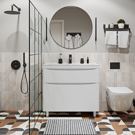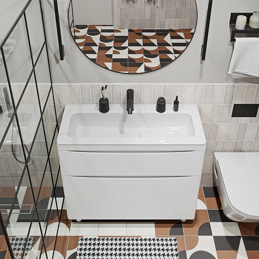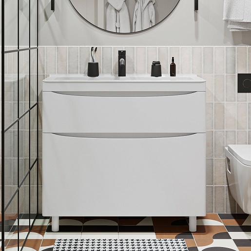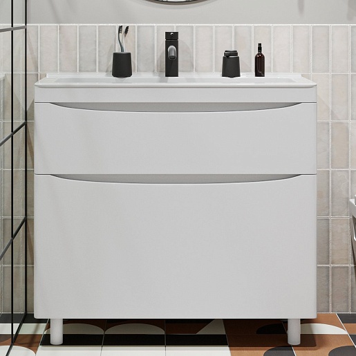 Тумба с раковиной Vivon Ostin 90 напольная белая матовая - арт. Ostin-noz-90-WH / kare-mini-90.