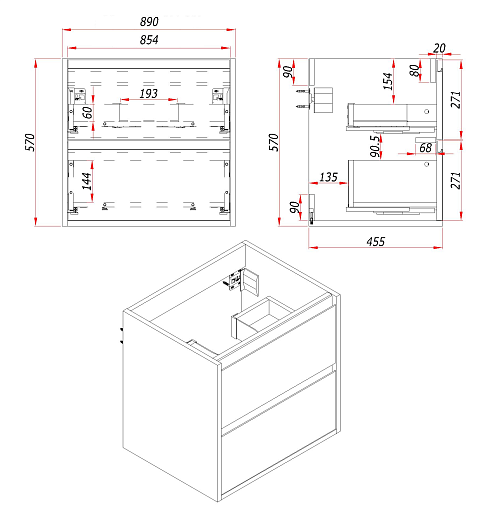 Зов Тумба с раковиной Парма 90 подвесная аттик